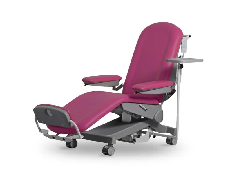 FoZa Multi to z kolei fotel dla długotrwałych terapii: dializa, chemioterapia, krwiodawstwo i krwiolecznictwo. Konstrukcja wytrzymująca 180 kg obciążenia gwarantuje niezawodność przy intensywnej eksploatacji w stacjach dializ czy centrach onkologicznych.